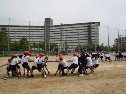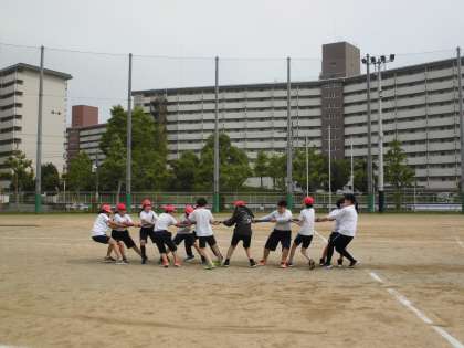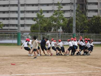 全力で棒引きを頑張る生徒たちの様子です。