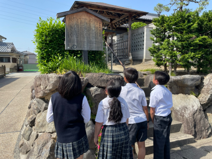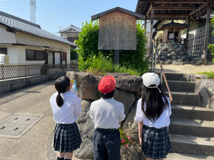 向島の歴史を調べるために、校区内にある駒札を見て回りました。