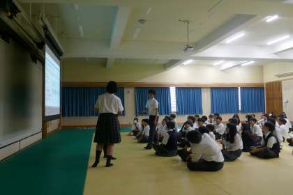 研修教員の福本先生とのお別れの場として「出愛に感謝の会」を行いました。和やかな雰囲気から、まずは「クイズ大会」が始まりました。