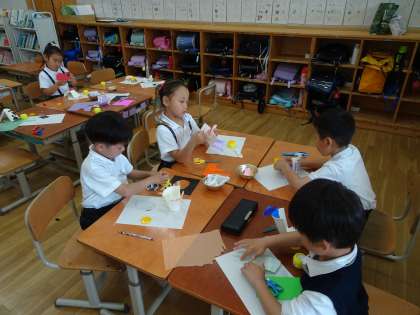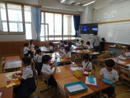 どんな物が何をしているか、想像を働かせながら折り紙などで飾り付けをしました。友だちと話ながら想像を膨らませていました。