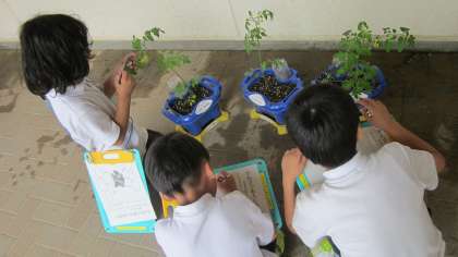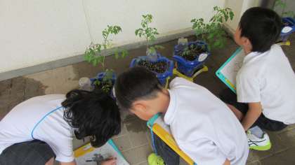みんなが今週の月曜日に1人1鉢植えた