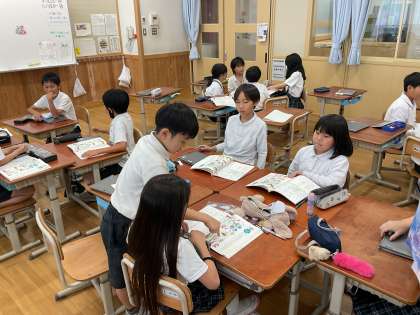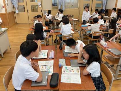 教科書をきちんと見て、グループの人と被らないようにや読み方を間違えないように楽しみながら行いました。