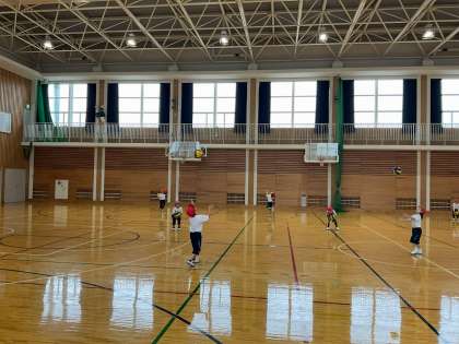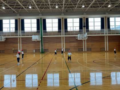 体育の学習でボール遊びをしました。ボールを高く投げ、できるだけ動かずにキャッチ!ボールをキャッチしたり、動かないように頑張ったり、みんな一生懸命取り組んでいました。