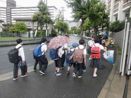 「おはようございます」と挨拶をして駐車場の門を過ぎた子どもたちが、引き返してきました。どうしたのかきくと、「一緒に来ている1年生が遅れている」とのこと。みんなでその1年生に「どうしたの」と優しく事情を尋ねていました。その後、その1年生を真ん中に、周りを包むようにして登校していきました。以前にもありましたが、上級生のこの優しさに心打たれます。