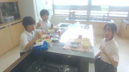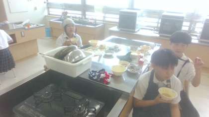自分たちの作った野菜炒めを食べながらいろんな感想を教えてくれました。
