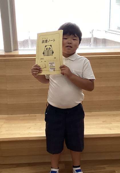 図書委員会の企画で1学期にたくさん本を借りた人に「ゴールドシール」がおくられました。1組からは3人が「ゴールドシール」をもらいました。