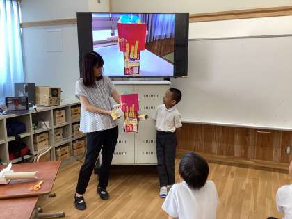 発表では友だちの作品について、がんばったことや工夫について質問をしました。