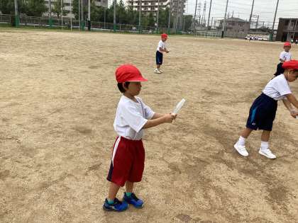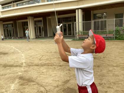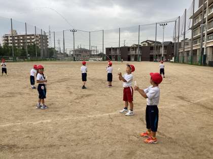 交流学級の友だちと一緒に水をとばして遊んだり、運動場に水で絵を描いたりした遊びました。