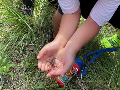今日は中央公園に夏見つけに行きました。耳を澄ますと虫の鳴き声が聞こえたり、春に見つけられなかった生き物を見つけたりすることができました。