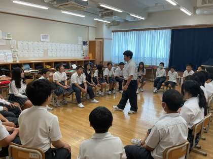まずは、7年生の企画した遊びを各クラスで楽しみました。