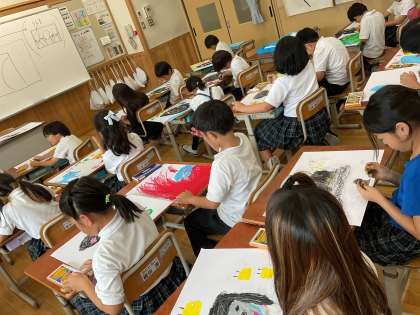真っ白な画用紙に向かって思い思いにパスを走らせる