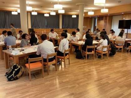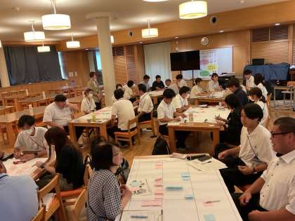 研究授業後の事後協議の様子です。授業を振り返って、子どもの学びがよりよくなるためには、どうすればよいかなどを話し合っています。他校の実践も交流しながら、有意義な協議が進められています。
