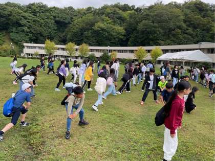 5年生 宿泊学習 13 2日目「朝の集い〜秀蓮体操〜」