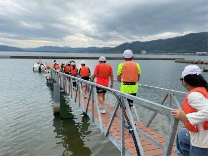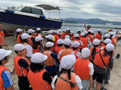 カッター体験の様子です。海の水は少し冷たいかもしれませんね。