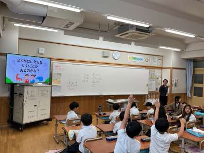 栄養教諭の先生による授業がおこなわれ、