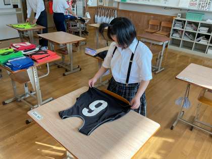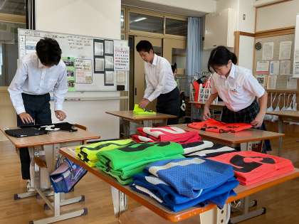 みんなが体育の授業で使うゼッケンの洗濯をしました。