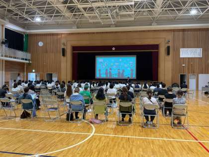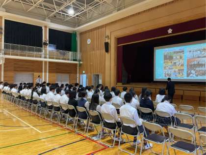 9年生も真剣に聞いていました。私学や公立の違いも十分に理解し、自分の進路を決めるためにじっくり悩みながら、お家の人や担任の先生と相談していきましょう。