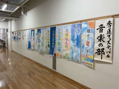 校舎内、アート回廊に素敵な作品が展示されています。本日は、秀蓮フェスティバル音楽の部(ベーシックステージ)が実施されます。ぜひお越しいただいたときに鑑賞してください!