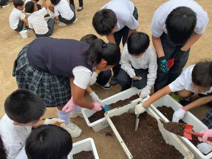 先日人権擁護委員の方に来ていただき、人権についてのお話を聞いたあと水仙の球根を植えました。4年生で大切に育てたいと思います。