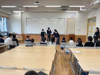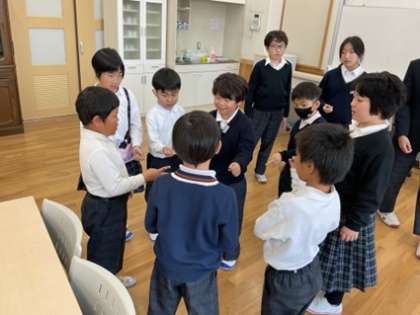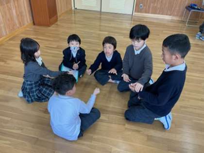 英語の学習の成果を1〜4年生にむけて発表しました。