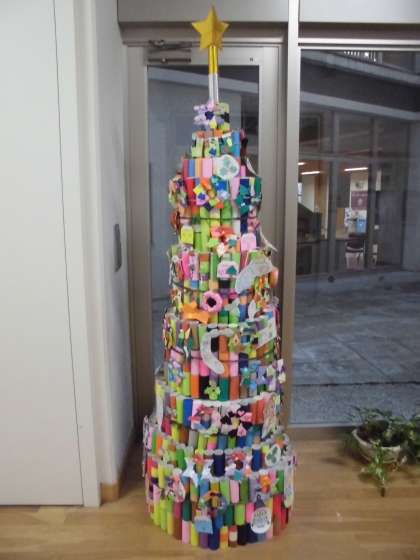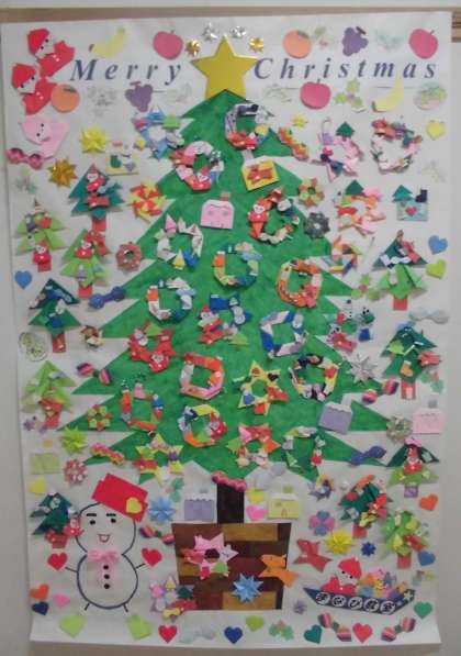 放課後まなび教室では、今年もクリスマスの飾りやツリーを作りました。まなび教室に通う子どもたちとスタッフの先生方で楽しんで作りました。