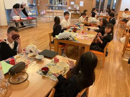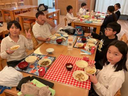 3年生が5年生に「ごはんありがとう!」と伝えたり