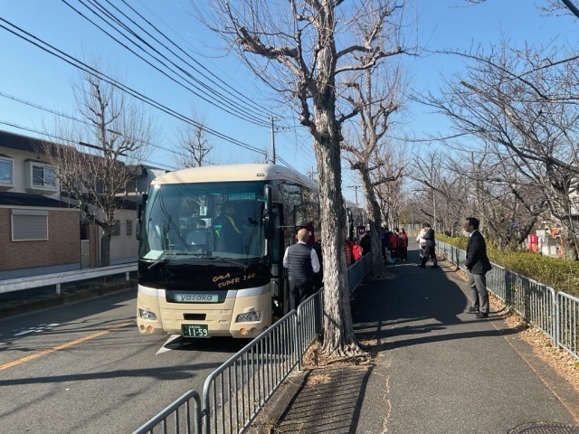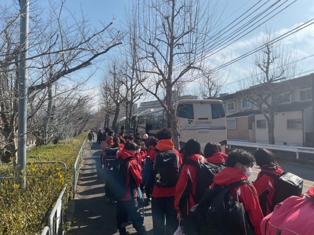 本日より、1泊2日の行程で「神戸・姫路方面」へ行きます。みんなお揃いのスキーウェアを着て、予定通り元気に出発しました!