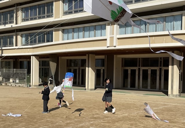 図工の時間に作った「タコ」をあげました!