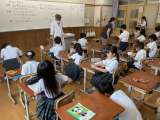 文房具カードを使いながらペアでゲームをしていきました。 歌で尋ね方や答え方を確認...