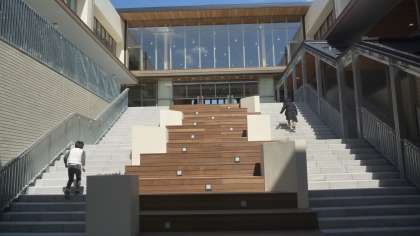 お天気もよくて,真ん中のウッドデッキのような部分に座ると「暖かい。」と喜んでいる子どもたちでした。