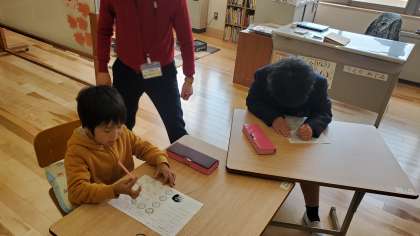 鉛筆の持ち方に気を付けて,はみ出さないように線を書く練習も頑張りました。