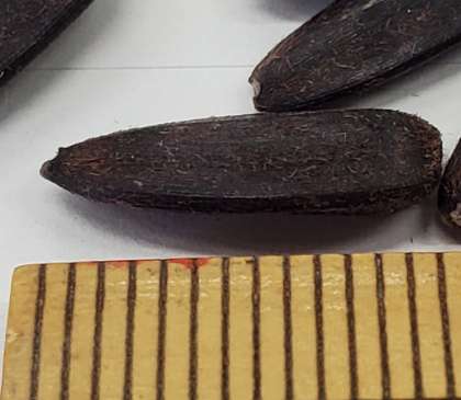 まっくろで細長い。とがっている方と丸くなっている方とある。