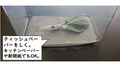 3)かんさつケースのそこに,紙をしいておく。
