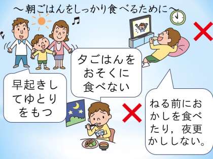 決まった時刻に起きることや朝ごはんをしっかり食べることは生活リズムを整えるために大切です。
