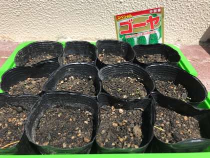今日のツルレイシの様子です。あたたかく,天気の良い日が多いですが,まだ「め」は出ませんね。来週の様子が楽しみですね。