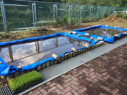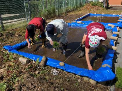 作った田んぼに水を入れ,田植えができるように準備しました。