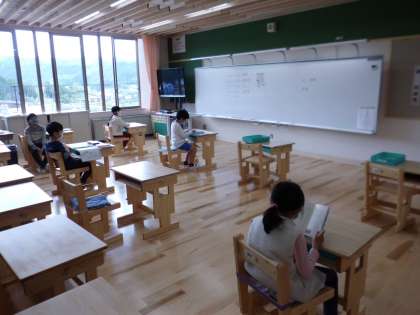 教室では,換気をして間を十分あけて座り,教室に入る前や休み時間には手洗いうがいをしました。マスクも全員,着用できていました。(だんだんマスクがずりおちたり,あごにかかっている人もいたので,鼻までおおうように気をつけようね)