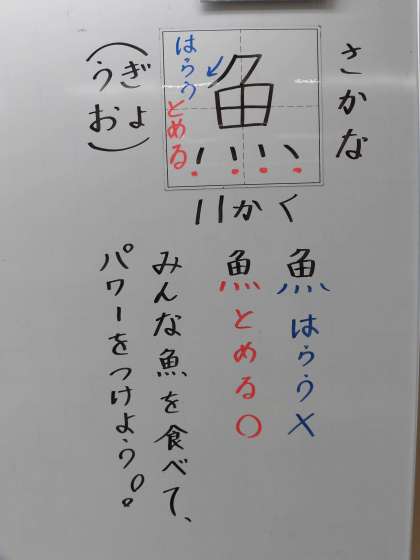 2年生 きょうのかん字『魚』『広』『前』