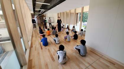 今日は,廊下前のホールでオリエンテーションをしました。