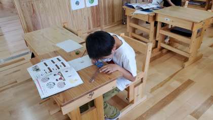 ヒマワリの種とホウセンカの種の大きさや,形をくらべていました。