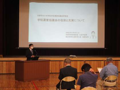 6月9日(火)19時より京都京北小中学校学校運営協議会発足式が行われました。教育委員会から学校に「指定書」が渡され,引き続き9名の委員の方へ「任命書」をお渡ししました。式の後は,学校運営協議会の役割について研修会を行い,首席主事よりご講義いただきました。お忙しい中,出席いただきました理事の皆様,本当にありがとうございました。