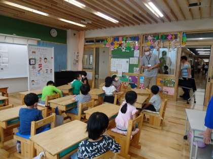 今日は,後期課程の先生が教室に遊びに来てくれました。
