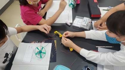 今日の実験は,直列つなぎと並列つなぎで,モーターをつなぎました。