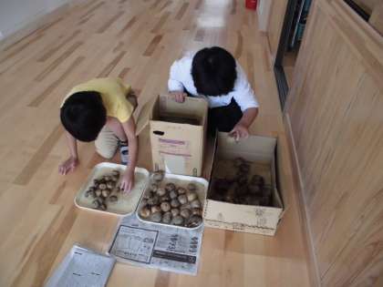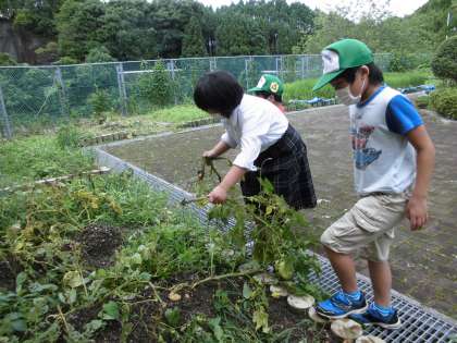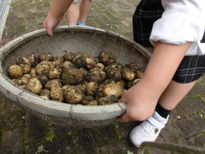子どもたちは,「おおー。」と感嘆の声を上げながら,ジャガイモを掘り集めました。