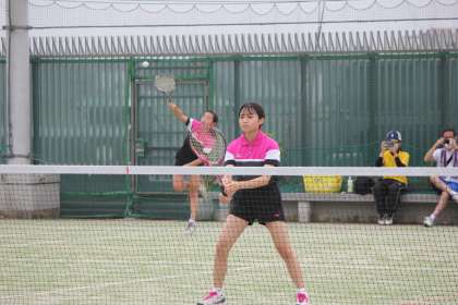 3ペアの内,最初のペアはシーソーゲームが長く続き,隣のコートでは第二ゲームも終盤になるほど長いしぶとい試合が繰り広げられましたが,惜しくもデュースの応酬の末,1−3で敗れてしまいました。第二ペアもよく似た展開となりましたが,これまた惜しくも1−3で敗れてしまいました。これでチームとしての敗退は決まってしまいましたが,第三ペアはくじけず,粘り強い試合を展開し,見事3−1で一矢報いる事ができました。