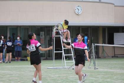 4連休の初日23日(祝),夏季選手権大会が中止になり,各部で可能な代換の大会が始まりました。その先陣を切って,女子ソフトテニス部の団体戦が下京中学校で行われ,洛南中学校と対戦しました。