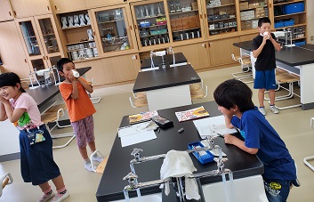 今日は,音が出るときに物がふるえるかをたしかめる実験をしました。