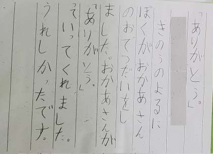 言われてうれしかった言葉に,「ありがとう」を選んだ子がいました。