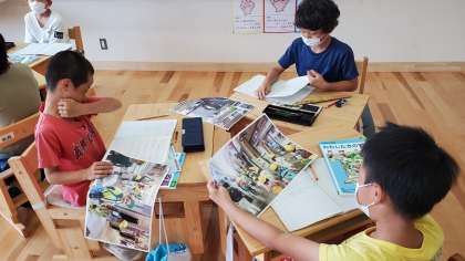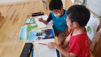 写真を見ながら,それぞれのまちの特徴を話し合ってまとめました。