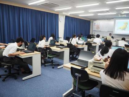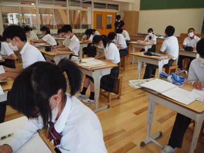9月8日(水)の授業の様子です。上から1組 美術「メタルレリーフ制作」でアイデアスケッチをしているところです。2組 技術「アニメ制作」でペイントを使い,アニメーションの絵を考えているところです。